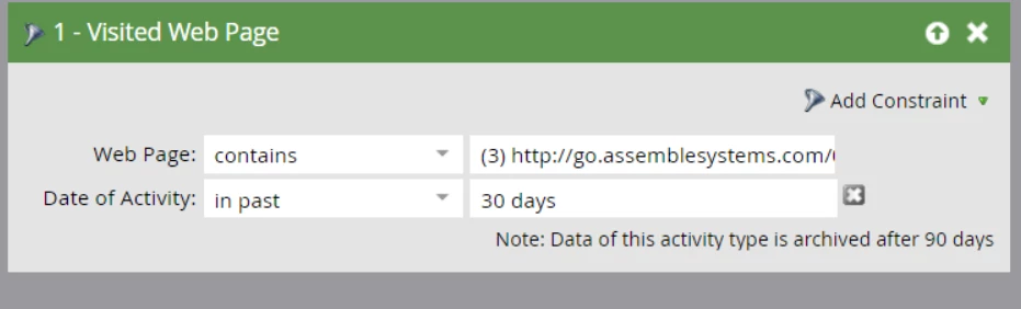 I want to make sure the date of activity in past 30 days includes those who visited the web page today.