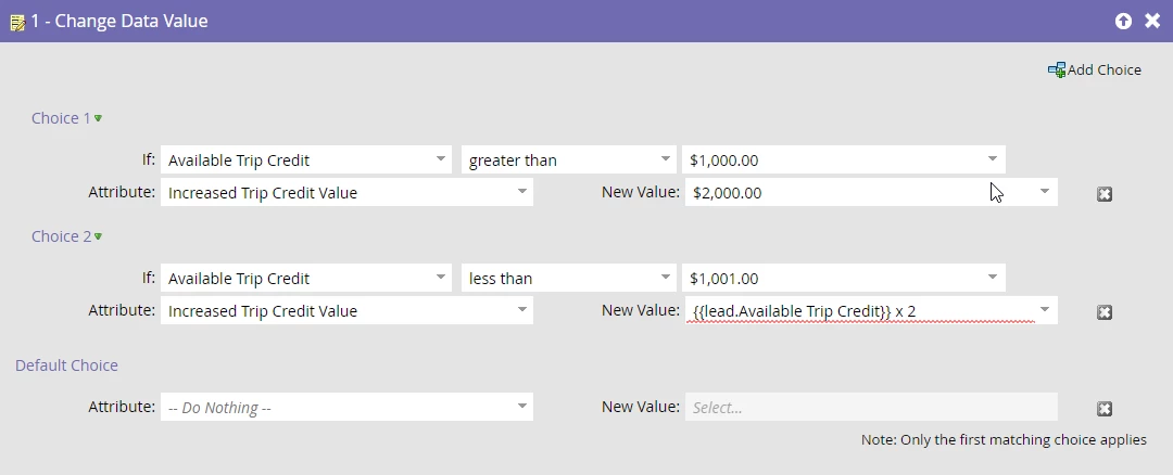 - If someone has an Available Trip Credit under $1000, we want to double that and populate a separate field called Increased Trip Credit Value with the doubled amount. So if they have a $400 credit, the newly calculated value would be $800.
