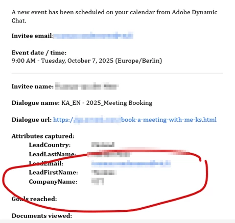 Dynamic Chat: Meeting Confirmation Email doesn't list skipped values