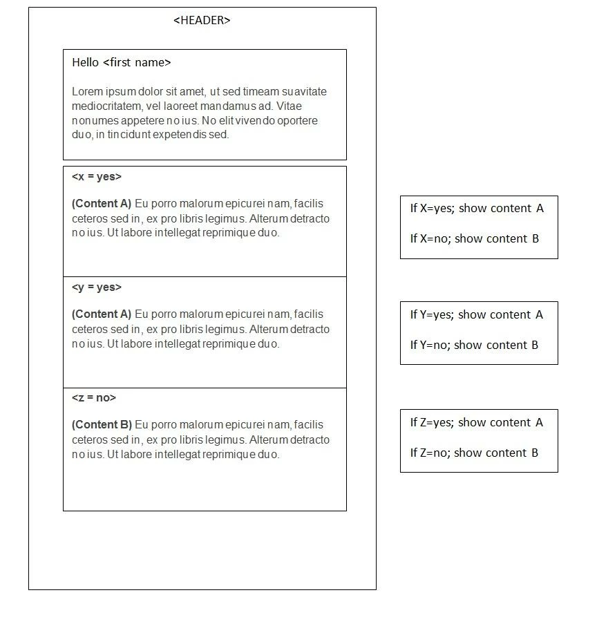 Eg. If a customer has been verified....."Yes" show "Content A" else show "Content B"