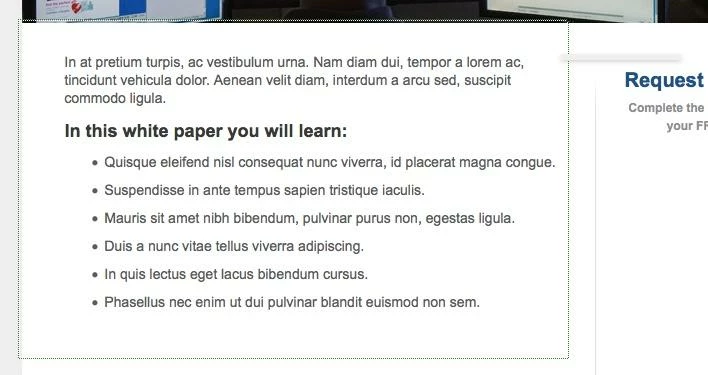 editable sections for a landing page template