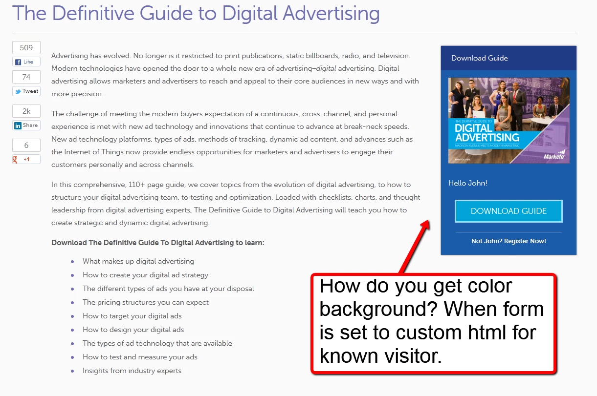 Can anyone help me with the HTML code needed to add a background color or border to the known visitor section of a form?