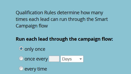 I built a triggered smart campaign and was testing a few leads as they moved through the program and was also monitoring changes in their program status. I was wondering when it would make sense for a lead to only run through the campaign flow once as opposed to every time. I was thinking that the "every time" option would make sense if lets say there was a smart campaign housing multiple triggers whereas "only once" would make sense if it were for a simpler campaign with one trigger/ flow-step. Or, is the "every time" option more applicable when you need to recycle leads through the campaign or when the campaign is part of an engagement program?