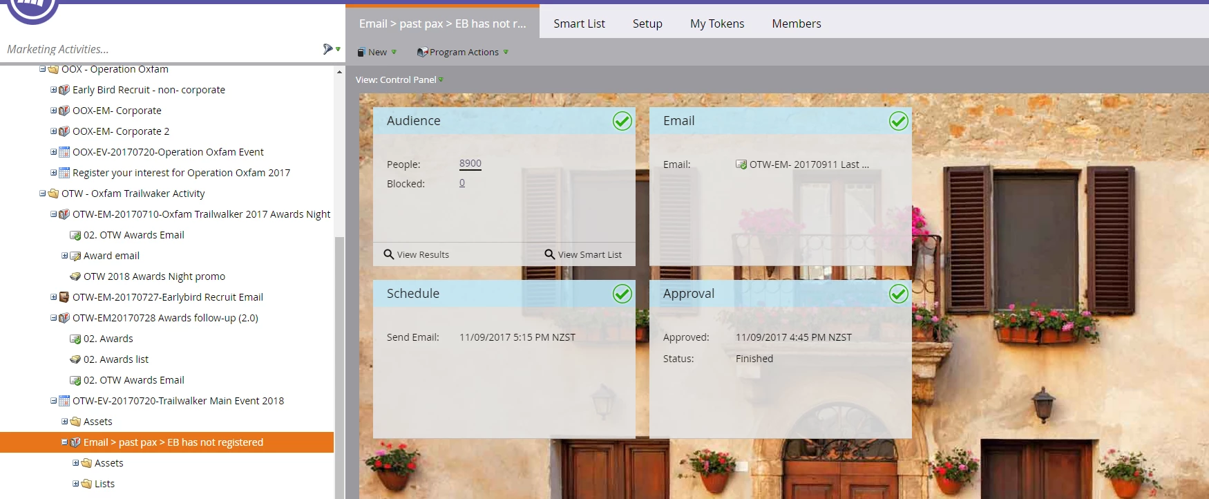 Click on one of those people in the audience and search their activity history for email activity from this email program. It is possible it was scheduled but skipped all those scheduled to receive it.