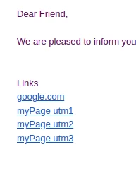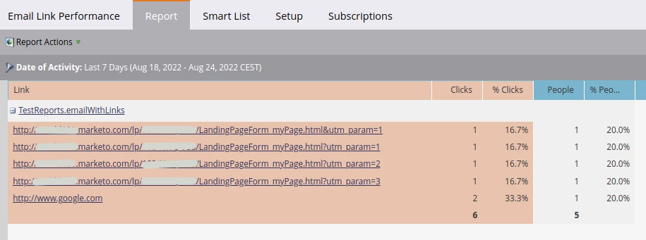 (in real case we use some person id when sending utm so for each person there will be unique link and reports contain many links in)
