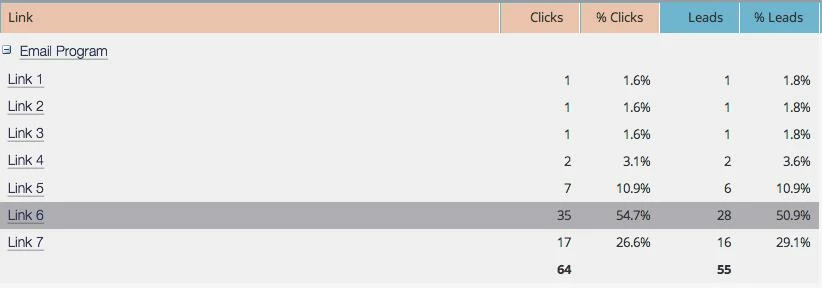 Total number of uniqe clicks per link and the sum at the bottom refers to all unique clicks. note that one lead is counted for each unique click so if they click on two separate links they will be counted and summed accordingly.