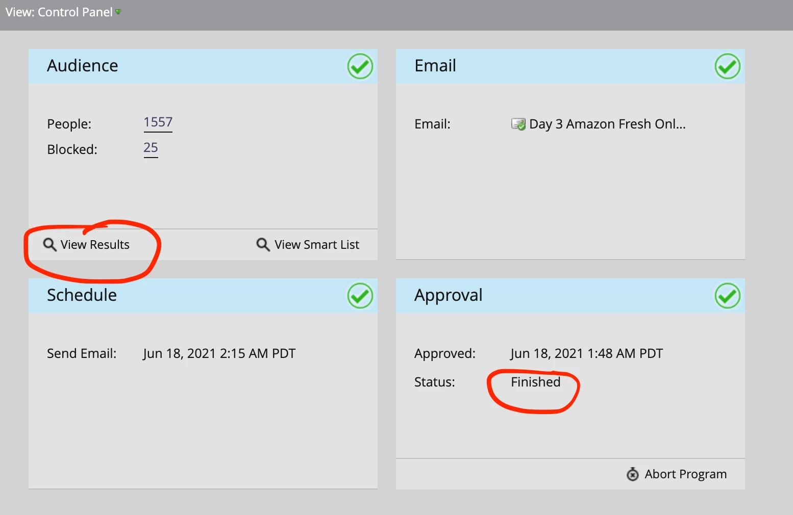 In the control panel of my email program it shows that my email campaign was triggered on the schedule time but when I go to dashboard it shows everything as 0. However, in the control pannel the 'Result' shows open, click etc ...
