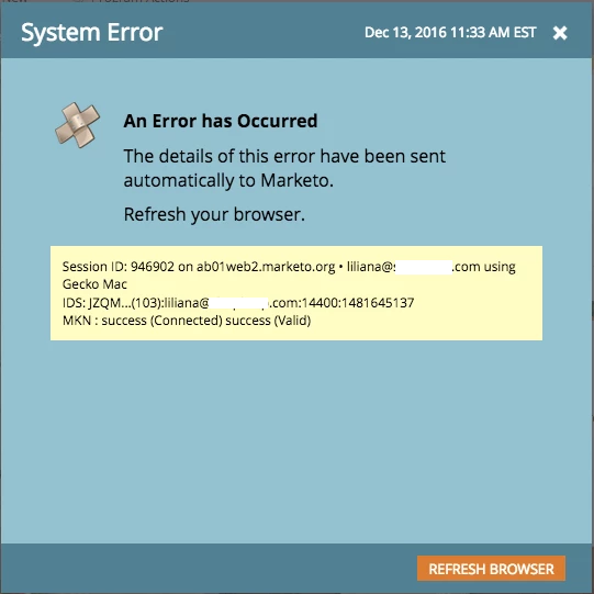 When I attempt to choose an email for Program B, the same system error pops up. I was able to choose the email asset but it was also the incorrect email asset. Why is this happening? Has anyone else experienced this before?