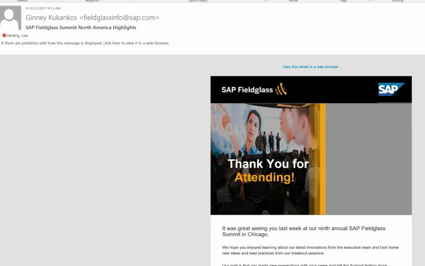- Some executives are receiving the emails with the graphic and headline rendered as a cropped version to the left. It almost is as though some of the mobile formatting is being applied when they open on their desktop. It is happening both when they have images turned on and off.