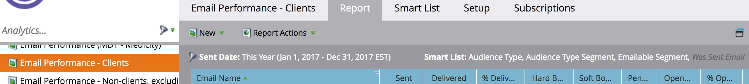 Is there a way to run a report on all of the email campaigns done this year -- but one that looks at all... and then separate out the ones that are aimed at Clients only versus Prospects?