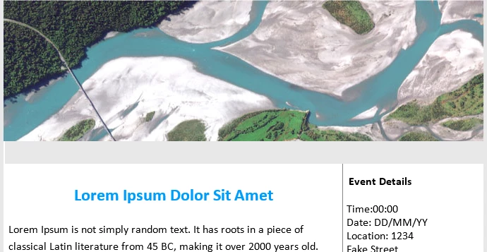 <td width="200" style="border-left:#848484 solid 1px;padding:0;vertical-align:top"> <h3 style="font-family:calibri,'Helvetica Neue',Helvetica,Arial,sans-serif;font-size:16;font-weight:700;line-height:36px;margin:0 0 20px 0;padding:0 0 0 20px">Event Details</h3> <p style=" margin:0; padding:0 20px 0 20px; font-family:calibri,'Helvetica Neue',Helvetica,Arial,sans-serif;"> Time:00:00<br /> Date: DD/MM/YY<br /> Location: 1234<br /> Fake Street<br /> <br /><br /> <a href="#">madeupurldotcom.com</a> </p> </td>