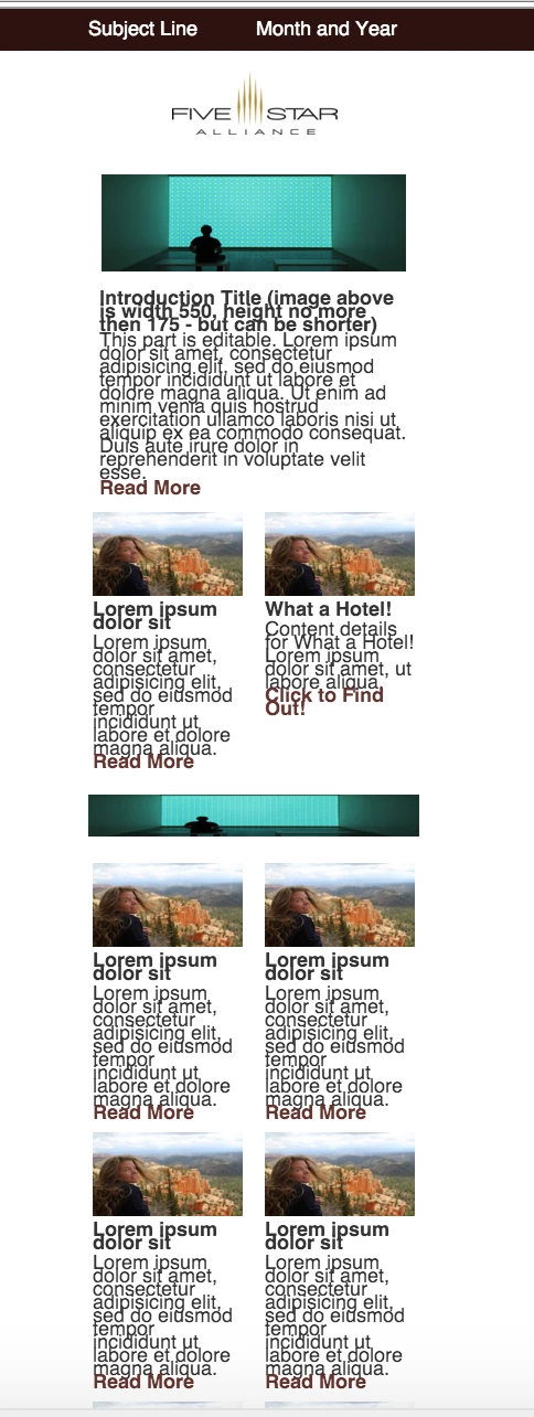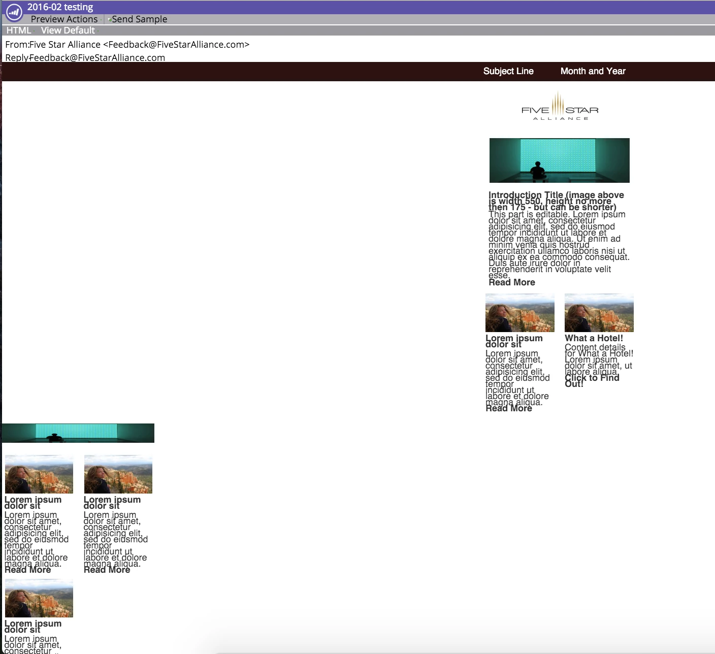 However, when we use the template for an email campaign through Marketo, the layout "breaks" just from opening the new email in the edit function. Whether or not we've edited the newsletter in anyway, it already has a broken layout.