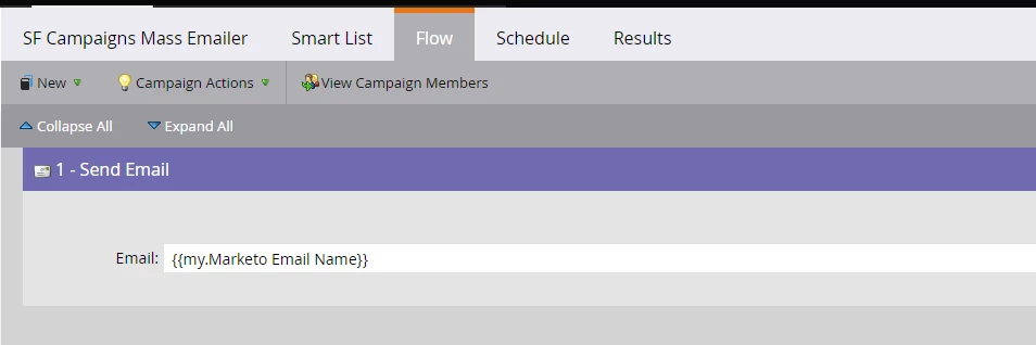 We have a need to have a single smart campaign, but we need to email to be different each time the campaign is executed. I noticed that the "Send Email" step in Flow step in Smart Campaigns seems to accept tokens, like so: