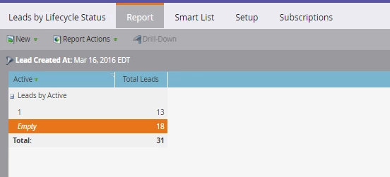 When pulling a lead report I always seem to have a Empty field with leads. As you can see below it shows we have 18 empty leads. Since I am unable to Drill-Down how can we find out who these 18 Leads are and why they are Empty?