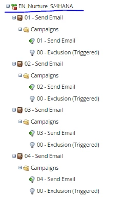 I have 9 emails with varying pieces of content (product brochure, blog, webpage, white paper, customer interview) in each email so does that mean I need: 9 programs, 9 emails, 9 smart campaigns, and 9 exclusion lists?