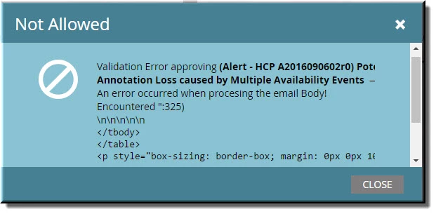 Validation Error approving (Alert - HCP A2016090602r0) Potential HCP Annotation Loss caused by Multiple Availability Events in Succession followed by Scavenging and Protection Services.(Alert - HCP A2016090602r0) Potential HCP Annotation Loss caused by Multiple Availability Events —