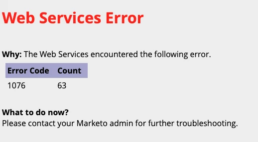 @nelsonjtf, if you look at the erroneous response of this web service integrated with Marketo (this however is something not available via the Marketo UI), you should be able to get more details on what exactly caused this error and eventually land on a potential solution for this too. If that's not possible, the Marketo support team can help you with more details of this web service error helping you to figure out a resolution for this.