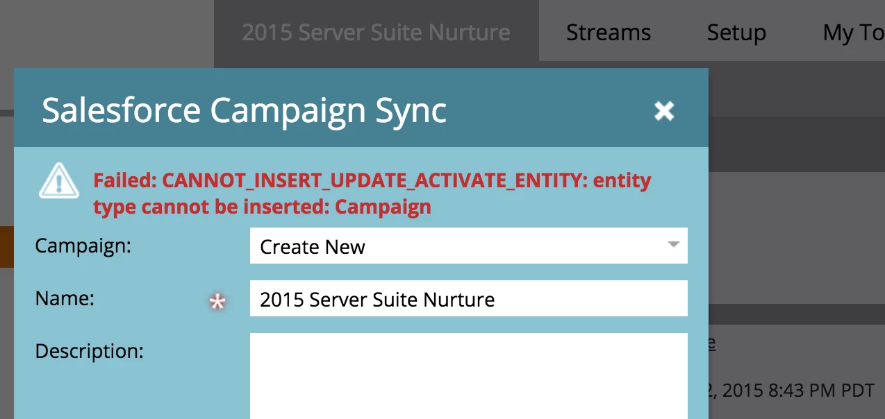Error when trying to sync Program to SFDC campaign