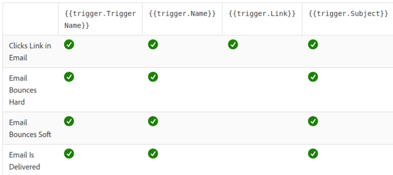 - {{trigger.Trigger Name}} which is the name of the trigger that caused the smart campaign to run