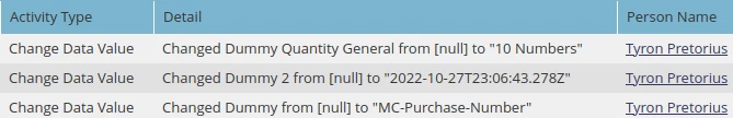 Custom activity fields with the primary attribute value denoted by an asterisk