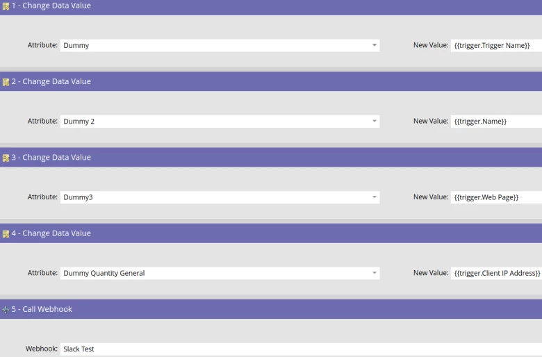 Setting of fields equal to trigger tokens and sending of the webhook