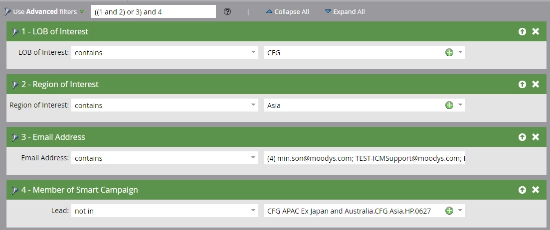 I have two smart campaigns, I wish to define the smart list of smart campaign B in such a way that no members of campaign A should exist in it. This is just to avoid a member getting an email twice since the email is same for both the campaigns and the members of both are mostly the same.