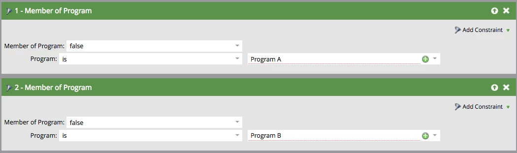 I am running program A and B, and am going to be creating program C. But I want to make sure that anyone who's currently in either A and B are not included in program C.