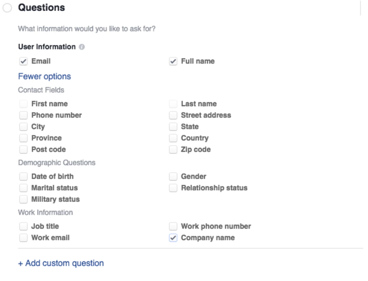 Our FB Lead Ads currently use 3 fields: