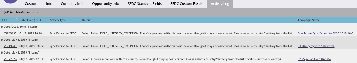During an SFDC sync, some records within my instance fail to sync, with the following error: