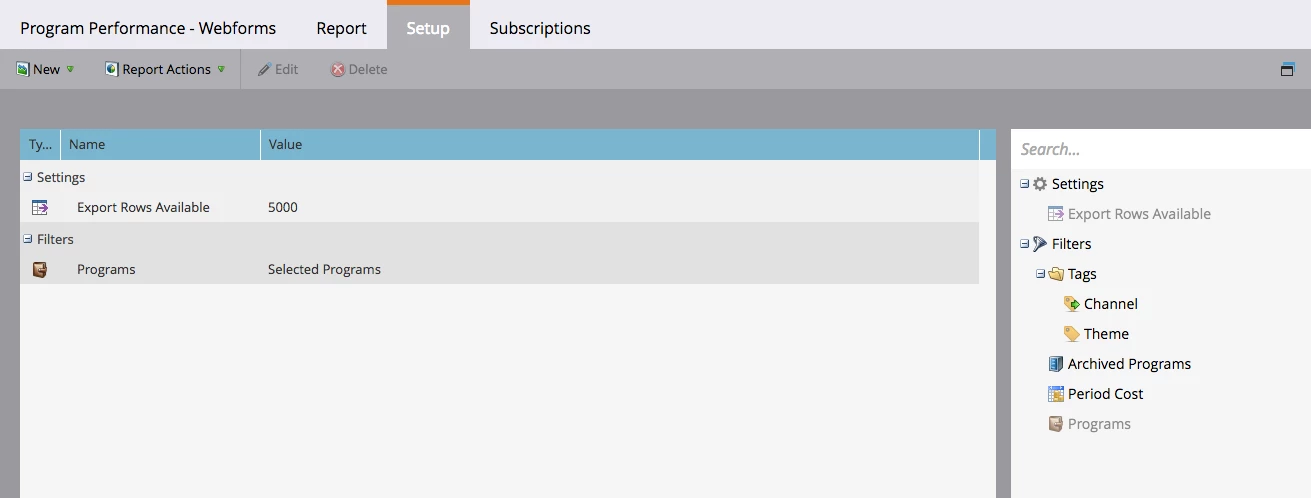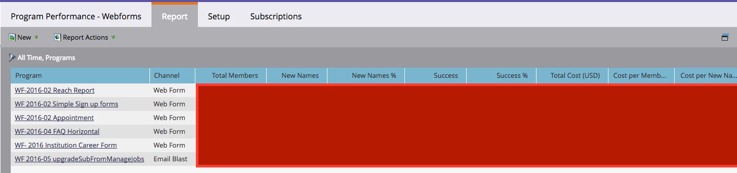 When I try to filter the report by clicking on that funnel icon on the upper left, "All time, Programs", it takes me back to the set up tab (screen shot 1). I can't seem to filter by dates, or at least add in a created/ acquired date column which I can then filter in excel. The programs containing web forms are set up with an acquisition date stamper... not sure where to go from here.