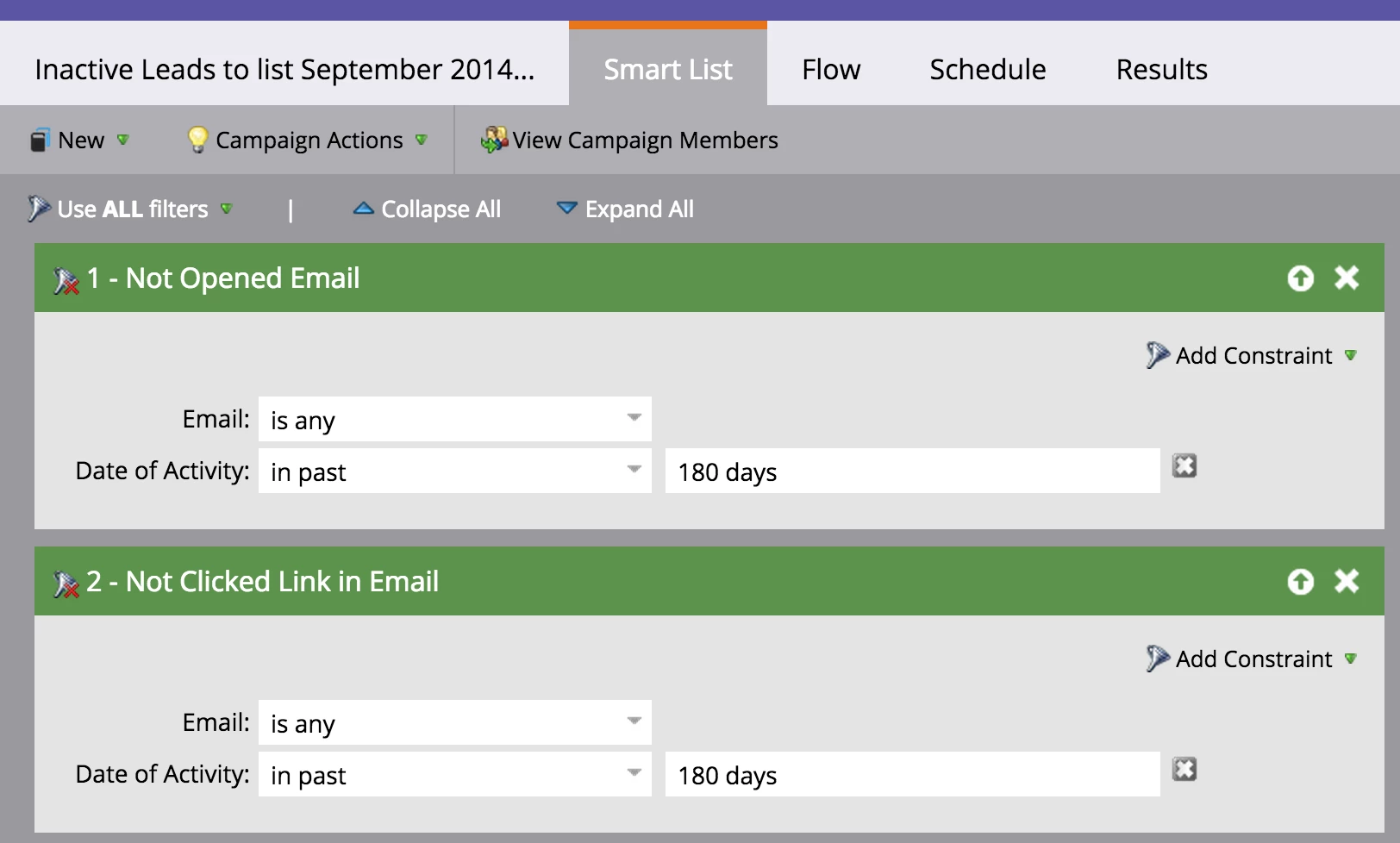I am new to Marketo and wanted to do an analysis on the leads in our database. I'm looking to find all the leads that have not opened an email (any email, not a specific email) in the last 18 months.
