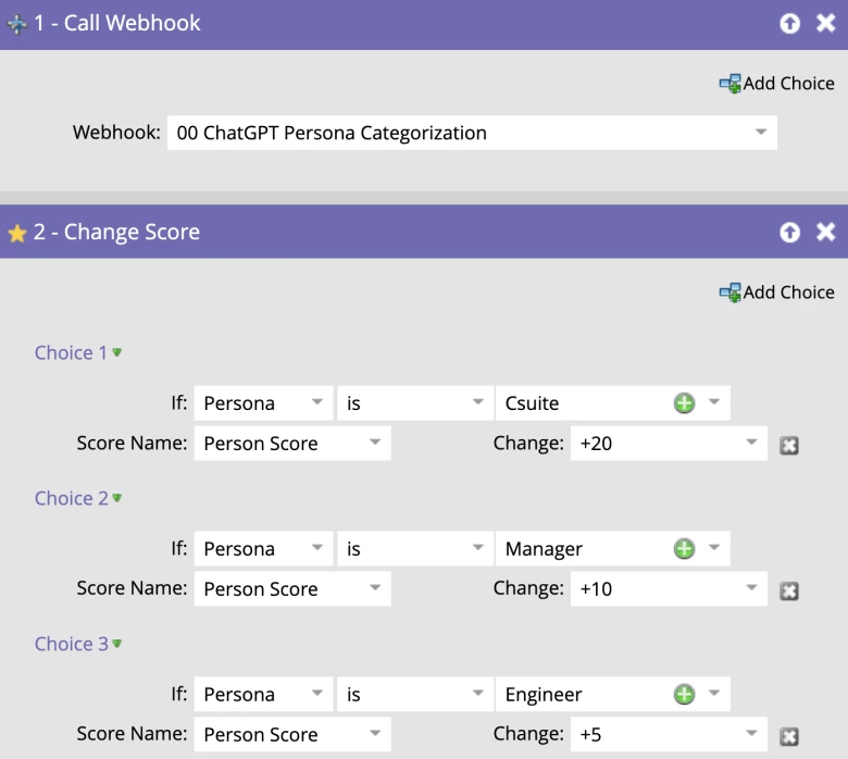 Webhooks are a nice, easy way to start using fine tuned models within Marketo. However, in general self service flow steps (SSFS) offer a number of advantages over webhooks that would make it easier to make requests to OpenAI and improve performance.
