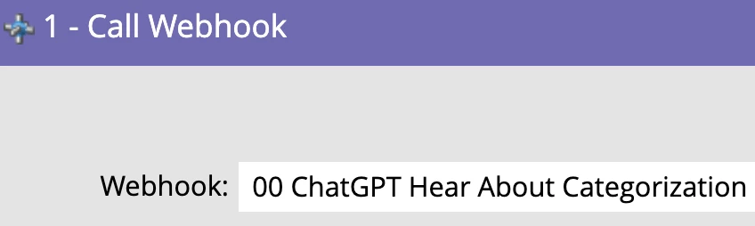 In the webhook for each use case we are going to make an API request to the create chat completion endpoint from OpenAI referencing the fine-tuned model to achieve the AI categorization we desire. We will be sending the webhook to this URL: api.openai.com/v1/chat/completions