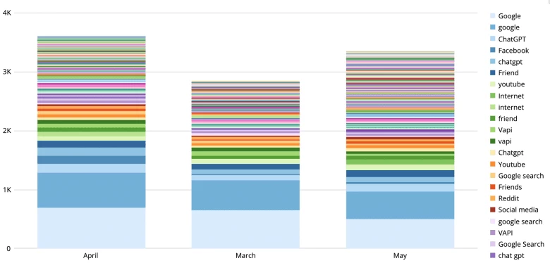 Where the real value comes from this open text field is that it shows all the places people are hearing about you that you are not responsible for and might not even know existed e.g. YouTube influencers mentioning your product, blogs linking out to your site, apps listing you as an integration partner etc.
