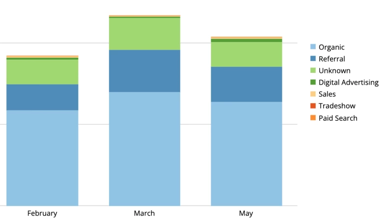 For example you can now build a stacked bar of “Hear Source” with month on the x axis and lead count on the y axis. If you had tried to build the same graph using the “How did you hear about us” field then there would be so many different values in the stacked bar that you wouldn’t be able to visually see “groups” to extract insights from e.g. goole, goggle, and google, will all be distinct lines in the graph rather than being grouped together.