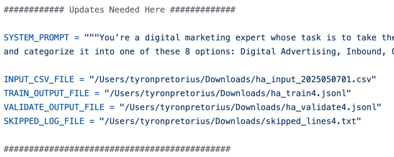 The power of building your fine tuned model on top of OpenAI’s broader base model means that even though your training dataset might only contain examples in English and no misspelled examples, the fine tuned model will still be able to understand titles in different languages or misspelt titles and map them to the correct persona.