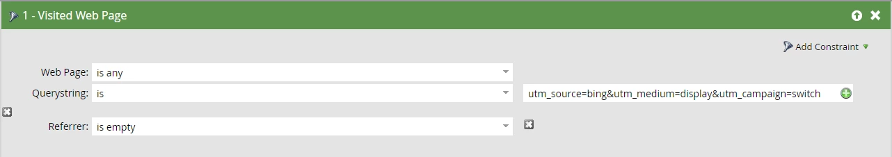 What I would like to understand is if we are able to map to the first 'Visits web page' interaction, to ensure the campaigns pull in that query string and not the other web page visits.