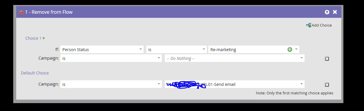 And we do not want that to happen, can some one tell me what filter I can add in flow between 2 and 3 that checks if Lead status is Re-marketing then take them through the remaining flow steps which is send email if its changed then remove them from flow which means they should not receive the email
