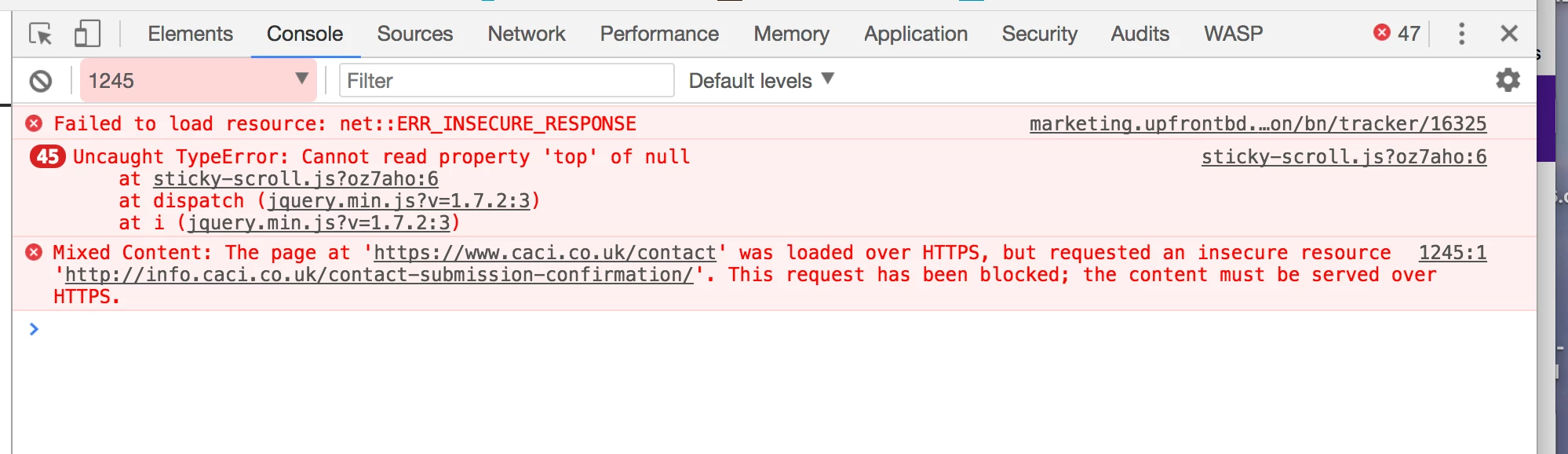 Recently we have noticed that for certain users after submitting, the button changes to be grayed out with the word 'sending' but never actually moves onto the follow up page.