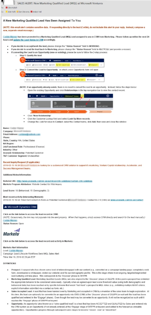 I would love to see a way to see the forms our customers fill out at inception, before sync, before anything so that I can compare to how it looks on the other side when it is synced with SFDC, incase there was a hiccup in the sync. I think this would be especially useful since we have noticed as of late some of this information is not getting pushed to SFDC and only showing in marketo (which is only helpful if one of us goes and looks it up, not for the rep working the lead). It would be nice if the forms showed up like the emails did for the rep to view if necessary.
