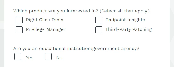 You can see the education/government question's answers do not mirror the product question format above.