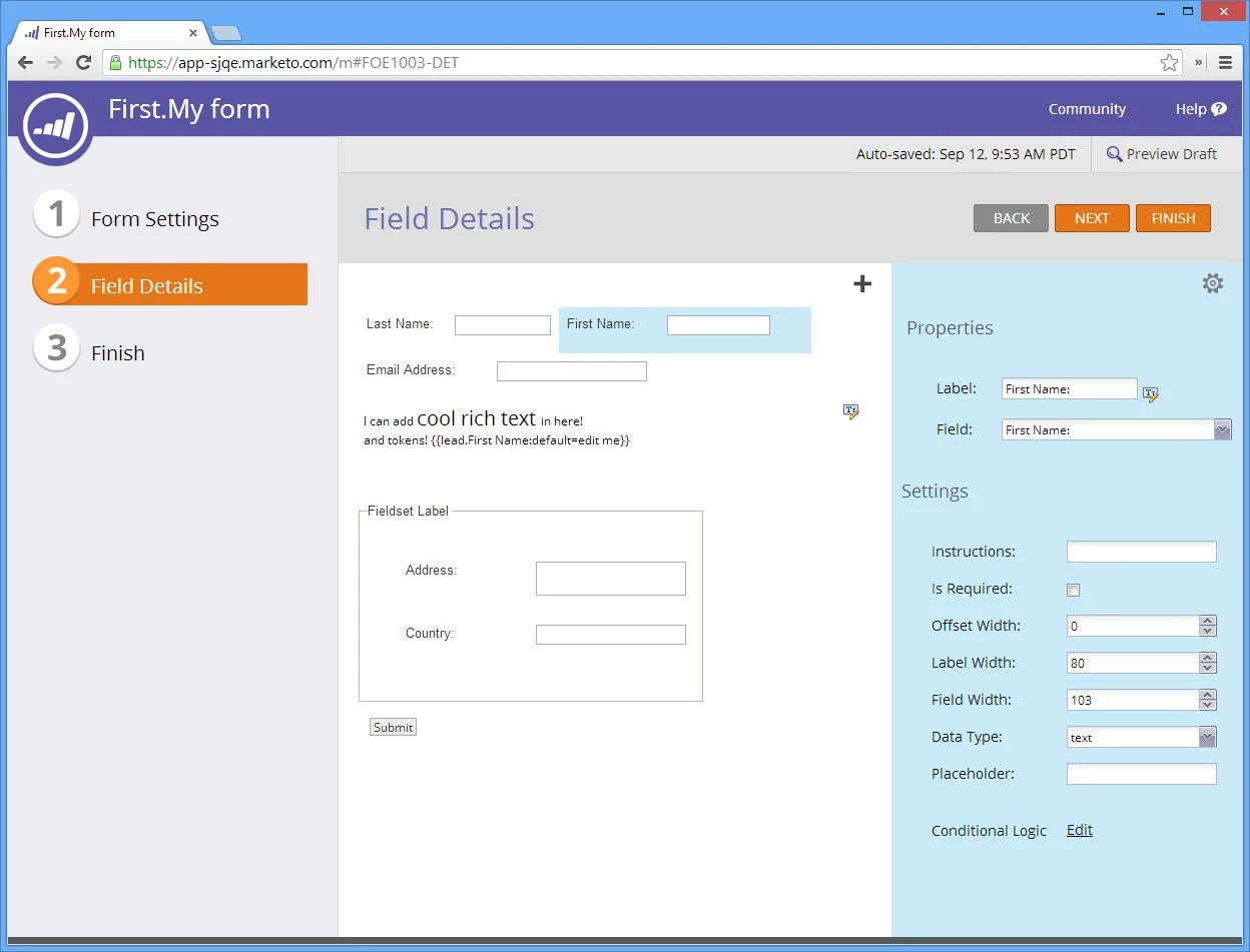 I must say that the forms was the most disappointing part of our Marketo experience. We use a lot of forms, for temporary events to sign ups for product samples and demos. Marketo just can't handle our needs. It was a major stumbling block in implementing our instance of Marketo and we are very very disappointed with the functionality provided.