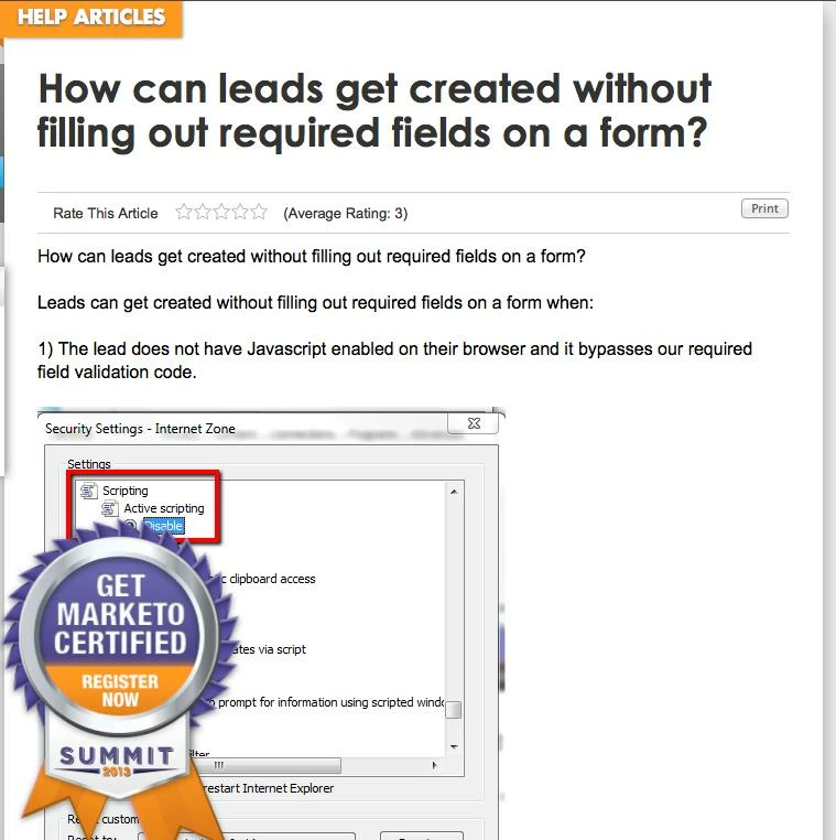 Not sure if this is unique to me, but on all help articles the Get Marketo Certified picture is appearing over the articles (see picture).