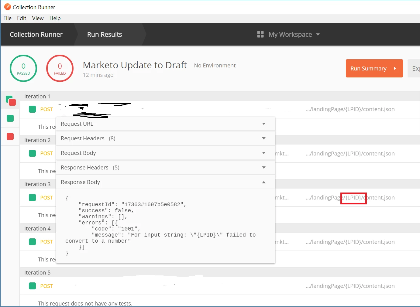 Am using the below URL to mass update of landing pages using landing page ID as variable. The excel header is been update to "id" to reference the data point when running the runner option in postman. I have set type=RichText and value=Test. Any help here to resolve this issue and update mass landing pages using the below URL.