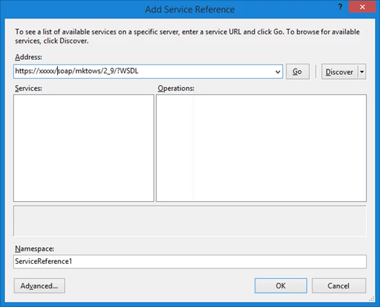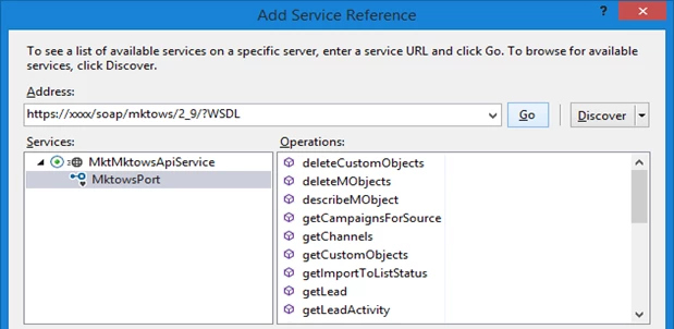 4. When you click Go, Visual Studio will query the WSDL that’s been published by Marketo and provide the following object model