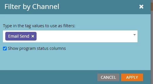 -> Create smart lists with Member of Program Status is <channel-status name> for all the available status values in program channels that you want to report on.