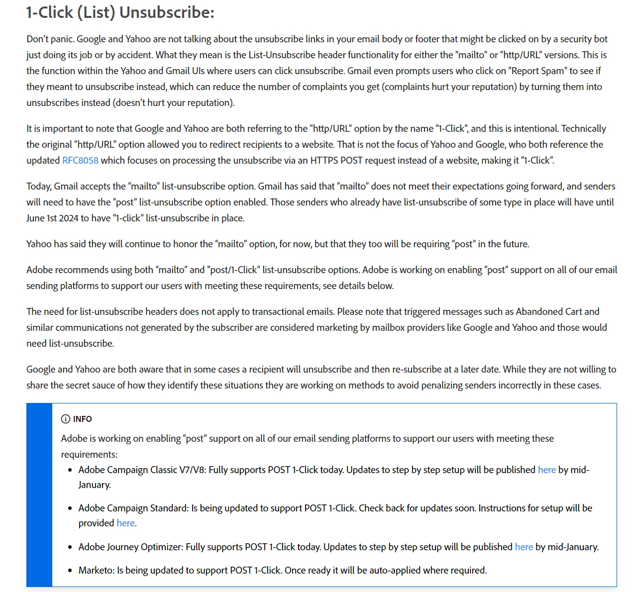 Google and Yahoo 1-Click (List) Unsubscribe policy changes