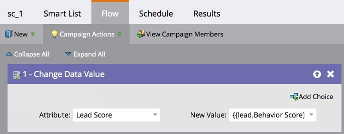 How can I run a campaign to change a data value so the lead score = the behavior score
