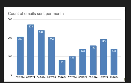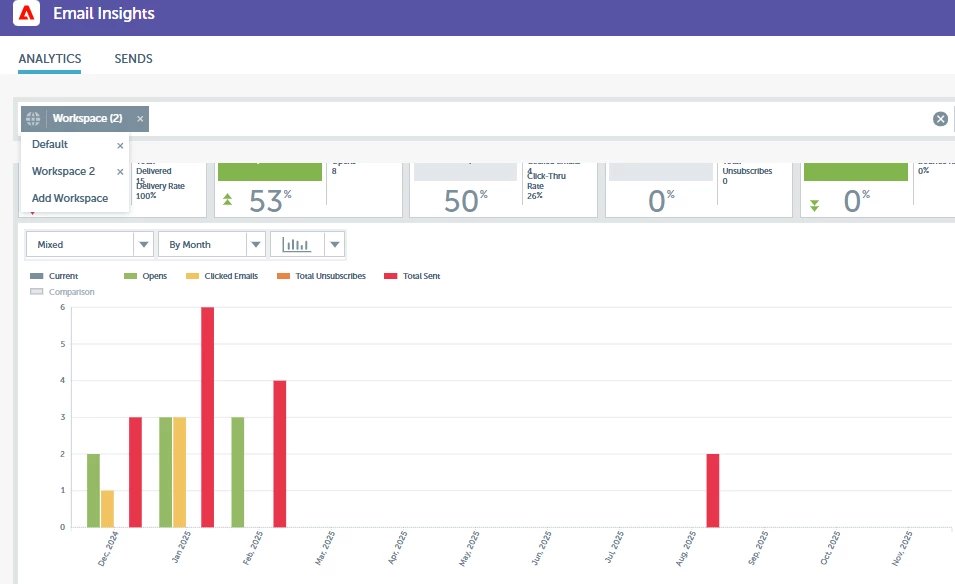 I would like to get count of emails sent by all the workspaces per month.