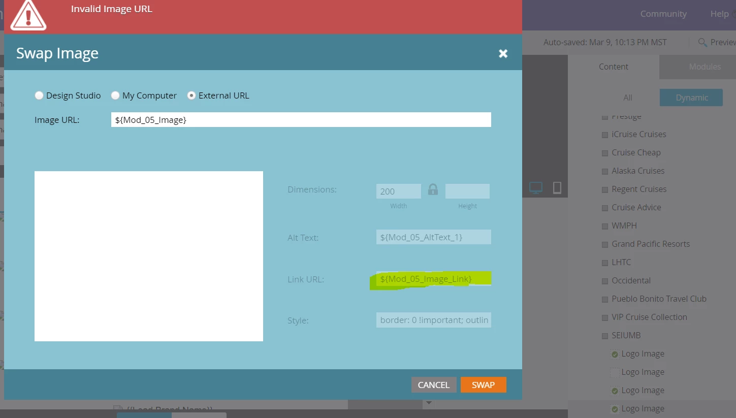 Thus far, I am only able to dynamically segment the image URL (i.e. I can set a different image for each segment), but I cannot access the link embedded on the image to segment that (i.e. I can't change out the link that I want people to go to when they click on the image). (**Ignore the Invalid Image URL warning--it goes away after updating the image URL)